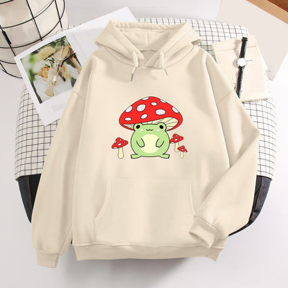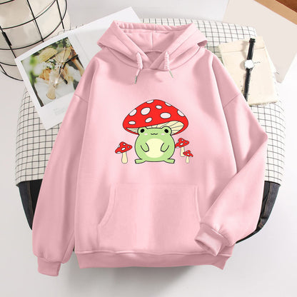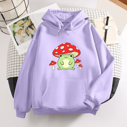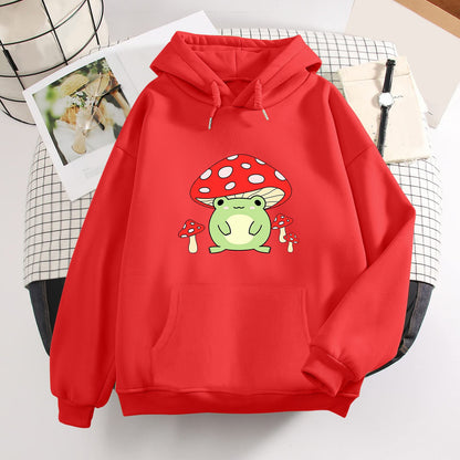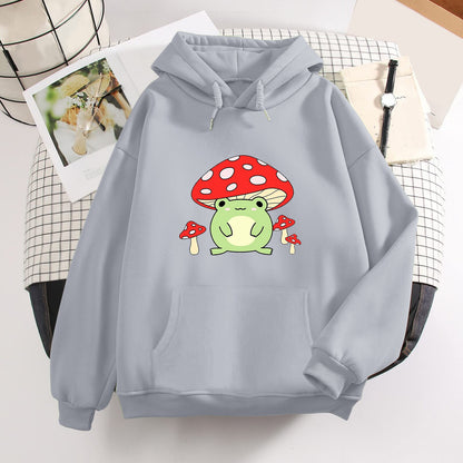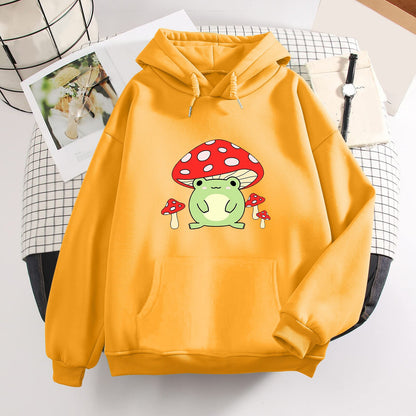 Stay warm in style with the Booyo Mushroom Frog Hoodie! This hoodie is made with a synthetic fiber-polyester blend and has a loose fit and regular length for an ideal casual look. It features a classic print and offers a breathable non-linear to make sure you stay comfortable all season.